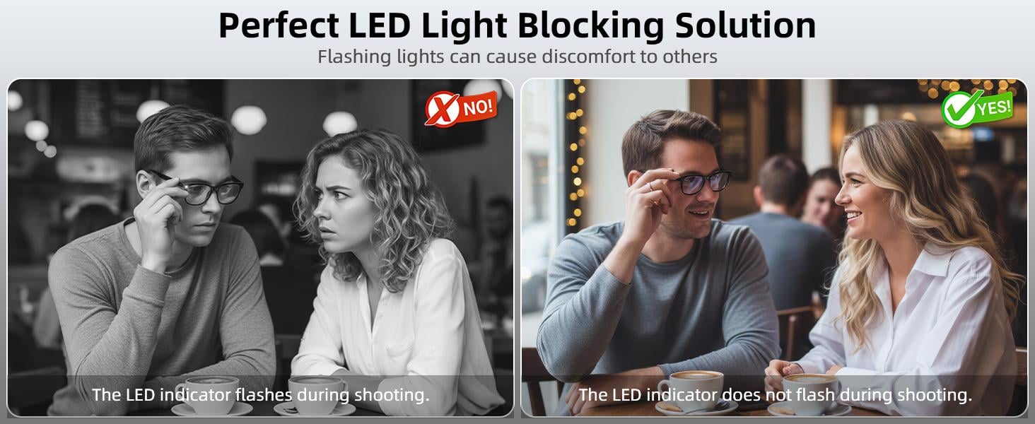 Smart glasses LED indicators can easily reveal when you're recording—making situations awkward, distracting, or even limiting how you use your device.