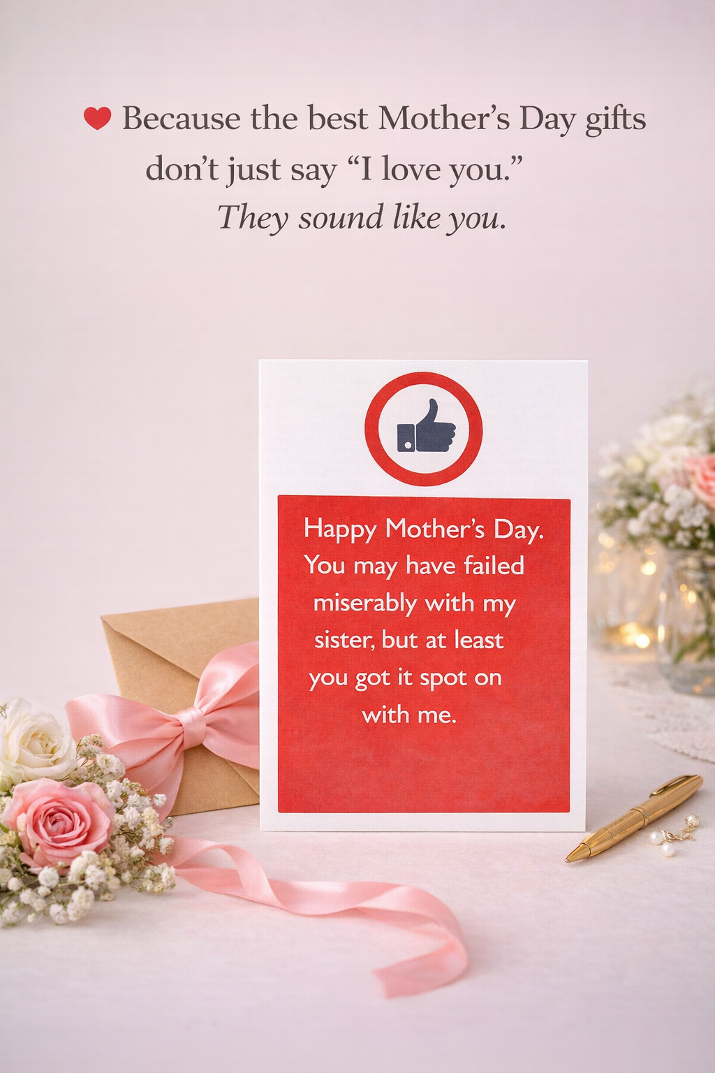 A funny Mother’s Day card with just the right amount of sass, love, and sibling-level honesty.